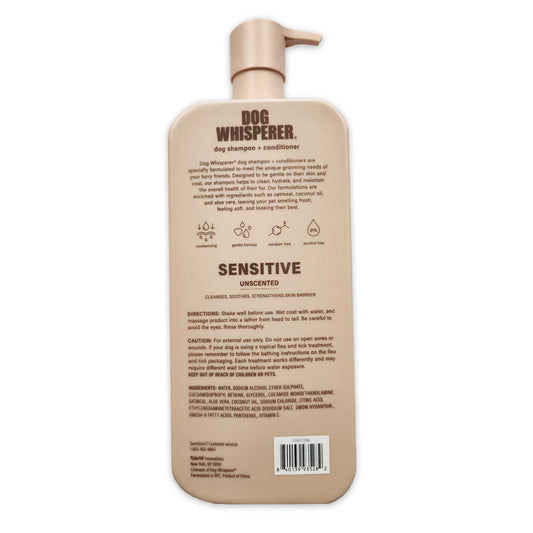 Dog Whisperer Unscented Dog Shampoo + Conditioner – Sensitive Skin, Hypoallergenic (34 oz)