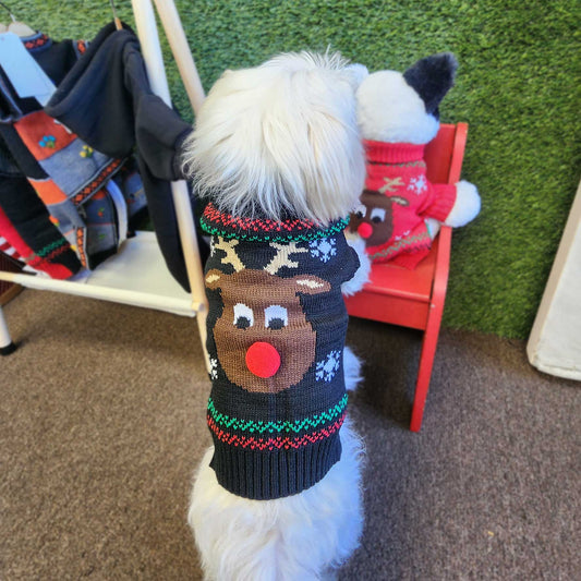 Rudolph Pet Sweater – Festive Holiday Knitwear for Small Dog Breeds