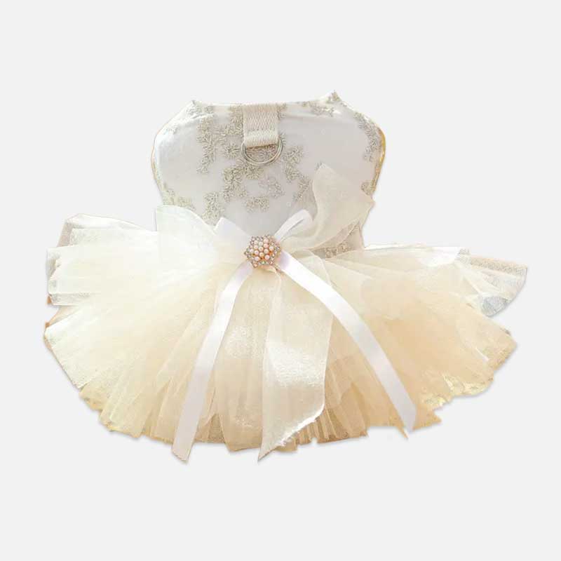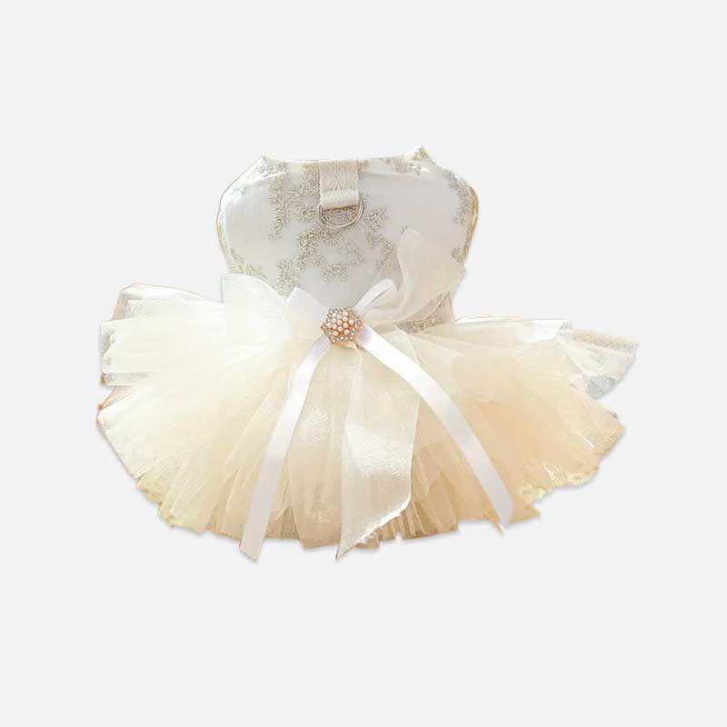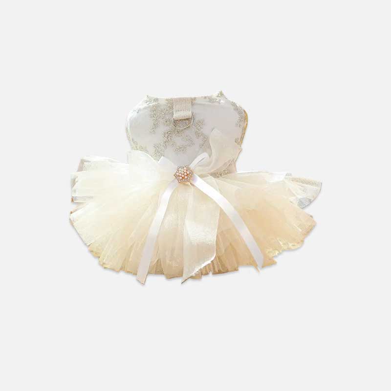 Dress your dog in elegance with our Adorable Bowknot Pet Dress, available in a beautiful beige color. Perfect for special occasions, this skirt features a lovely bowknot and tulle design, adding a touch of sophistication to your pet’s wardrobe. Made from high-quality, comfortable fabric, it ensures your pet stays cozy while looking stylish. This skirt is available in sizes suitable for small, medium, and large pets, making it a perfect fit for various breeds. Whether it's a party, a photoshoot, or a day out, this adorable bowknot pet skirt will make your pet the center of attention.